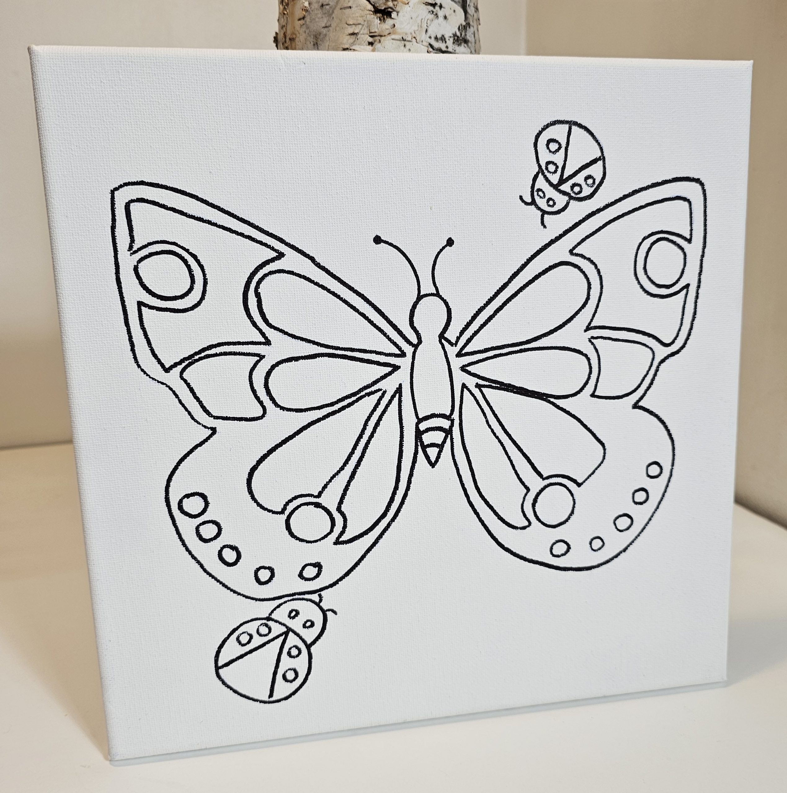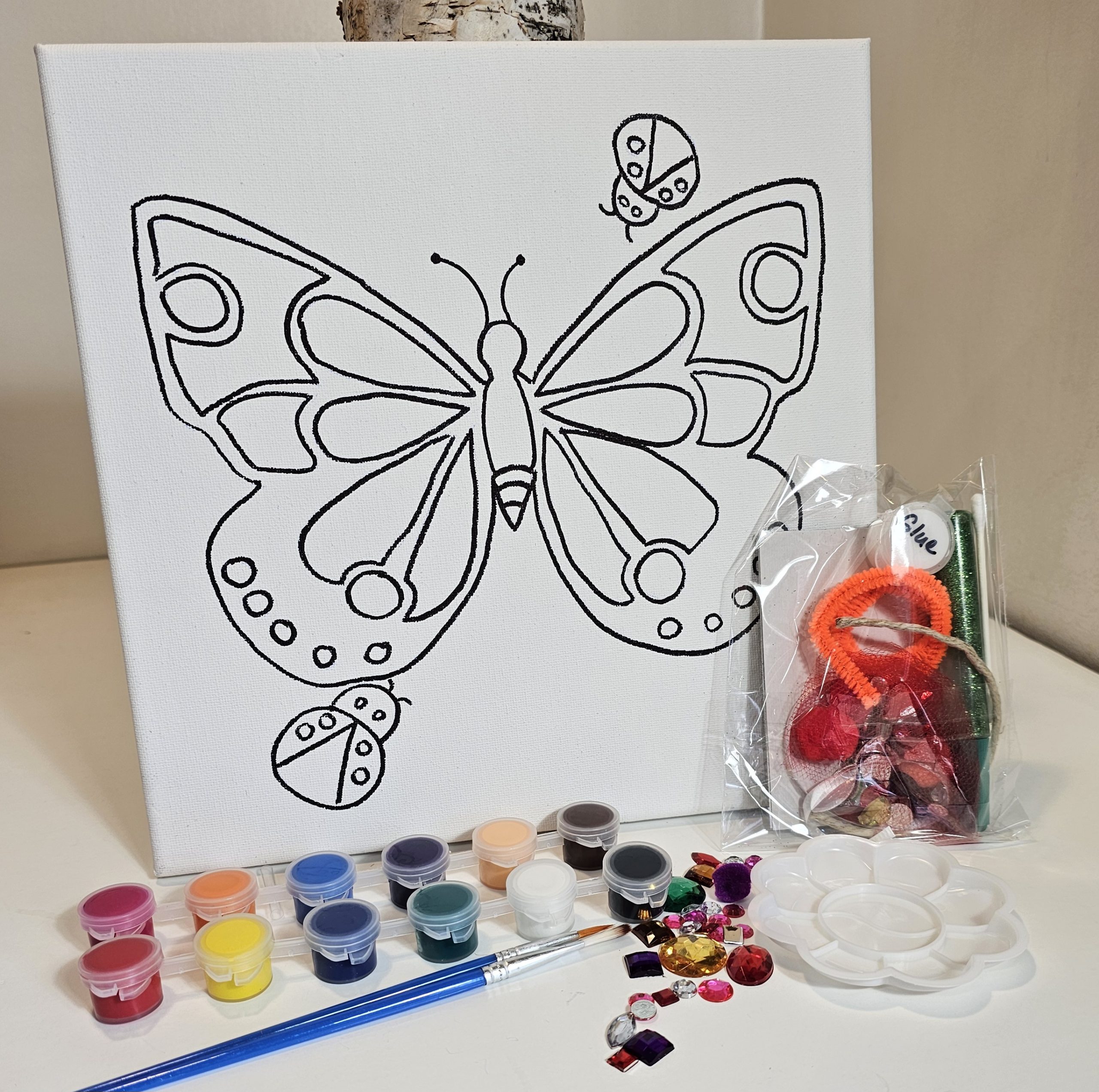 Add a playful twist to your painting session with the Creative You Butterfly with Ladybugs Canvas Kit. Centered around a beautiful butterfly and two adorable ladybugs, this 10×10 design captures the whimsy and charm of spring.