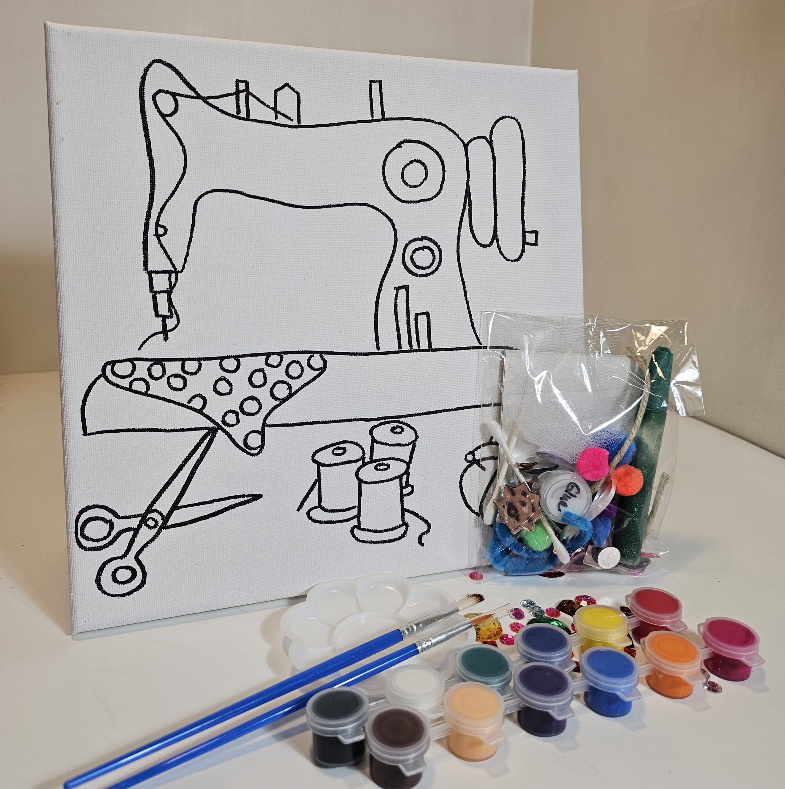 Celebrate the art of handmade with the Creative You Sewing Machine Canvas Kit. This 10×10 canvas showcases a charming vintage sewing machine—symbolizing creativity, tradition, and the joy of crafting. It’s a cozy and nostalgic design that will resonate with sewists, makers, and art lovers alike.
