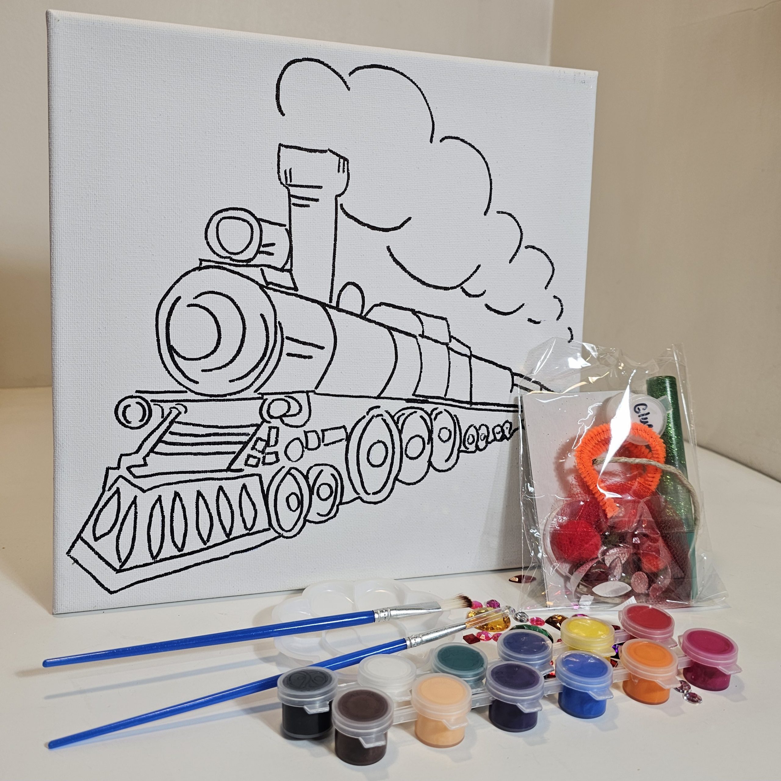 Part of the Creative You line by Small Town Artist, this canvas kit is a great choice for classrooms, weekend crafts, and thoughtful gifts for young train enthusiasts.